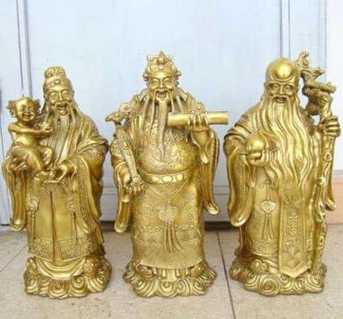 Tượng trưng cho 3 vị thần đem lại may mắn, sức khỏe, hạnh phúc cho mọi nhà. Trong đó, Phúc Thần chủ về của cải và hạnh phúc, Lộc thần chủ về quan lộc và tài lộc, cầm quyền trượng. Thọ thần chủ về trường thọ. Khi đặt 3 vị thần này, bạn chú ý đặt ở vị trí cao và trang trọng, mặt quay ra cửa chính.